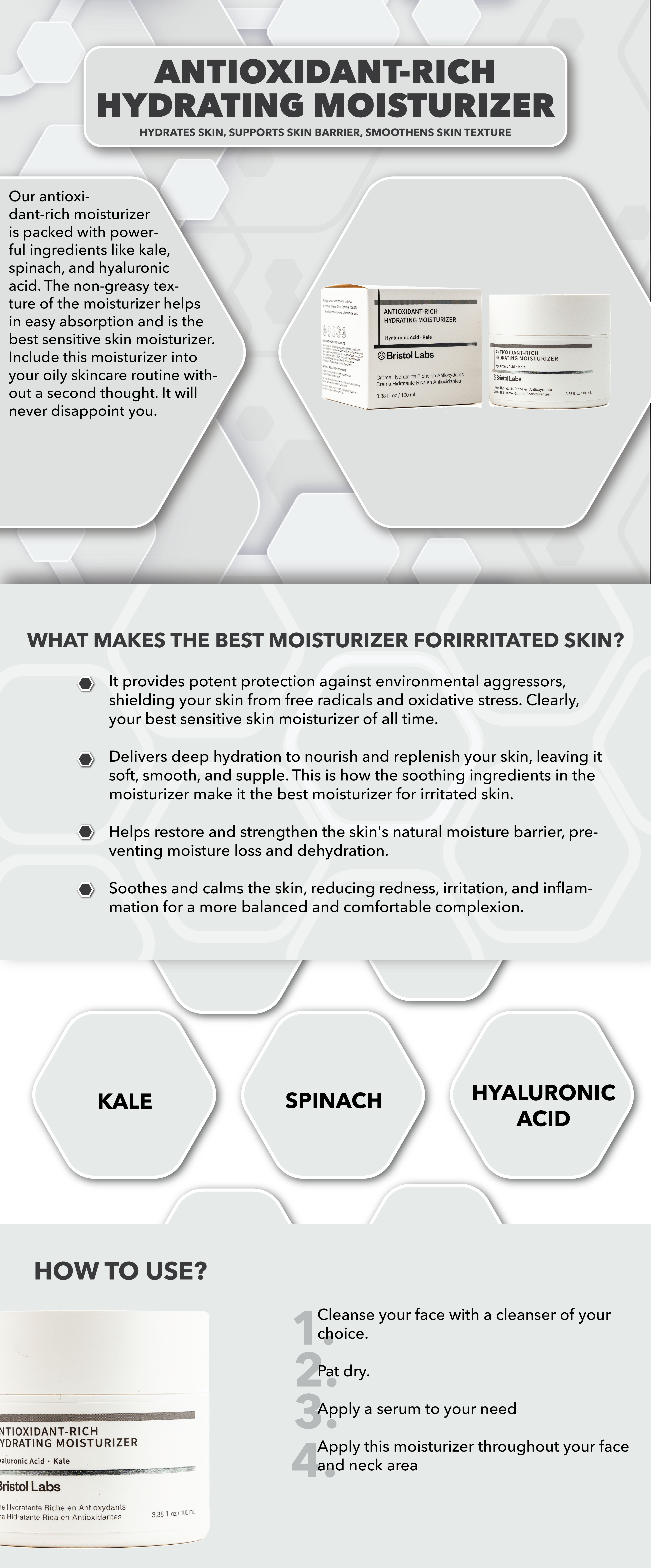 Our antioxidant-rich moisturizer is packed with powerful ingredients like kale, spinach, and hyaluronic acid. The non-greasy texture of the moisturizer helps in easy absorption and is the best sensitive skin moisturizer. Include this moisturizer into your oily skincare routine without a second thought. It will never disappoint you.