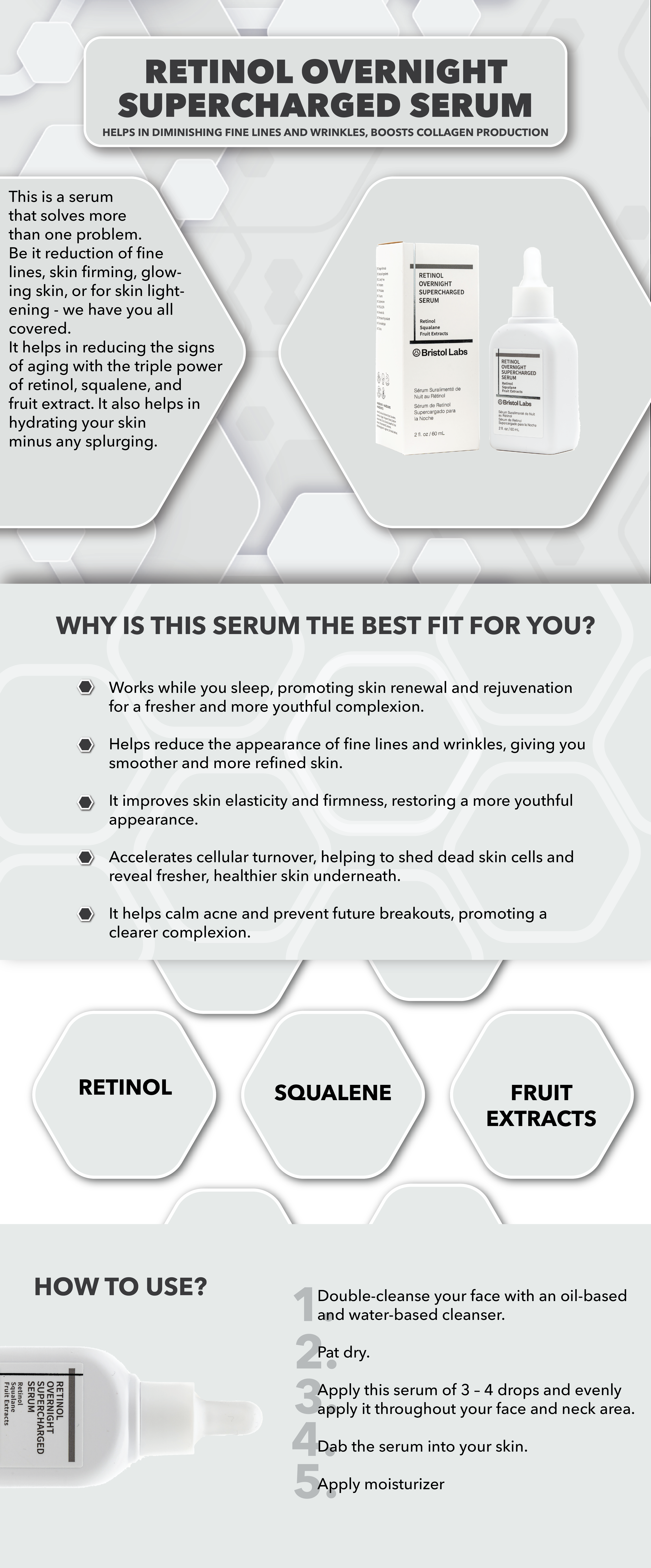 This is a serum that solves more than one problem. Be it reduction of fine lines, skin firming, glowing skin, or skin lightening – we have you all covered. It helps reduce the signs of aging with the triple power of retinol, squalene, and fruit extract. It also helps in hydrating your skin minus any splurging. Finish off your night skincare with a light face cream after applying retinol.