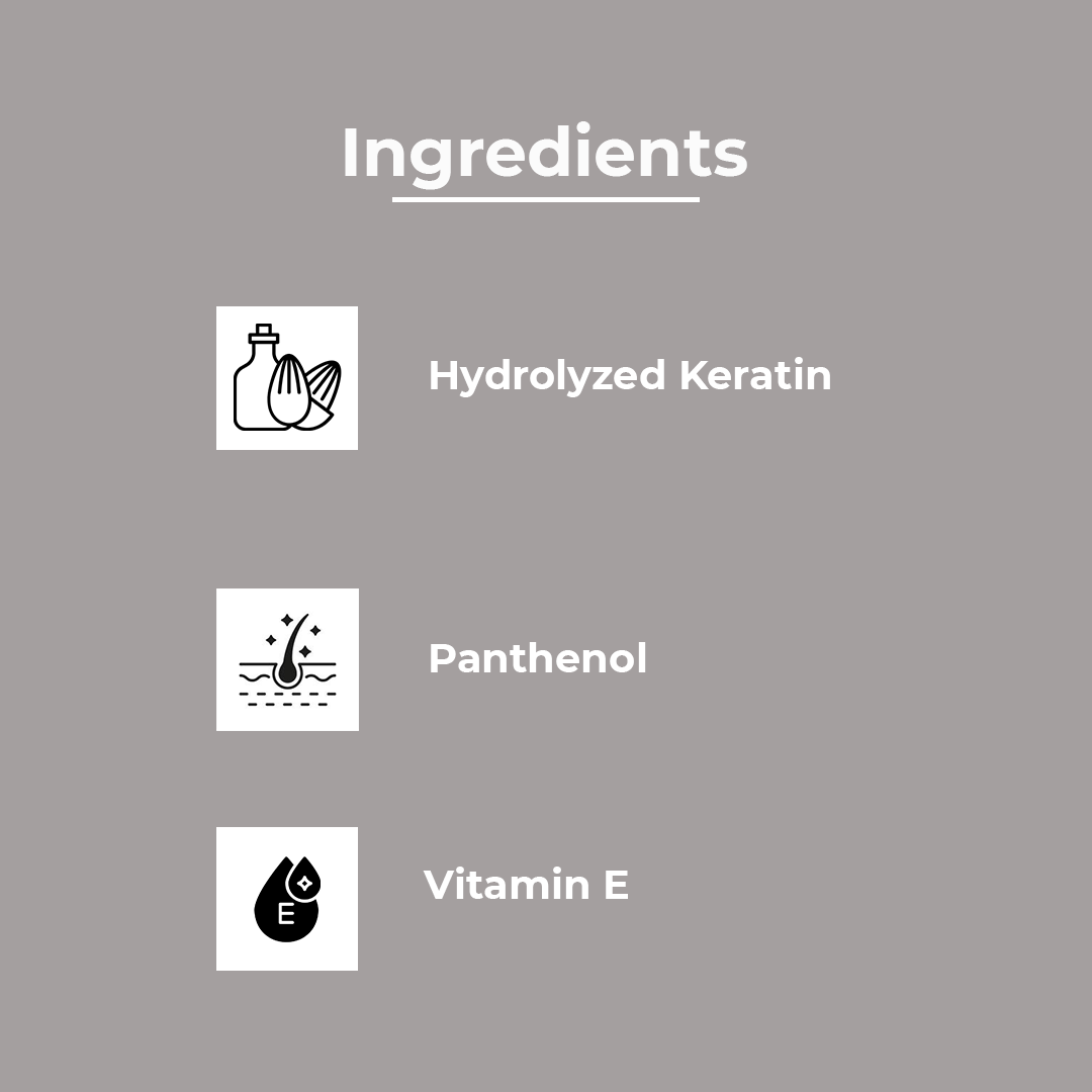 • Hydrolyzed Keratin – Strengthens hair by filling in gaps in the hair cuticles.