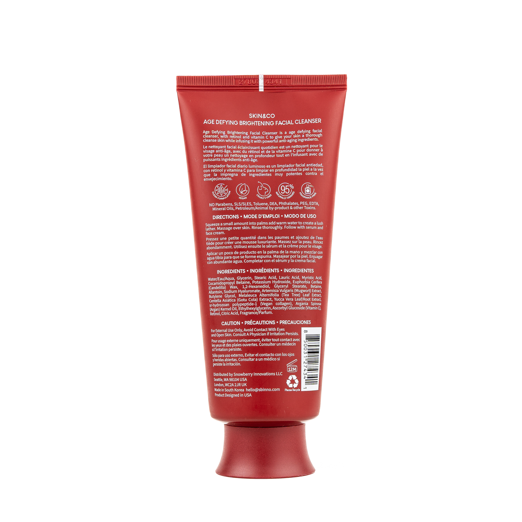 Formulated with a powerful blend of Plant Collagen, Retinyl, and Vitamin C, this cleanser is designed to leave your skin feeling fresh, radiant, and rejuvenated every single day. Plant collagen helps in skin elasticity. Vitamin C and Retinyl focus on working with dullness and spot reduction.